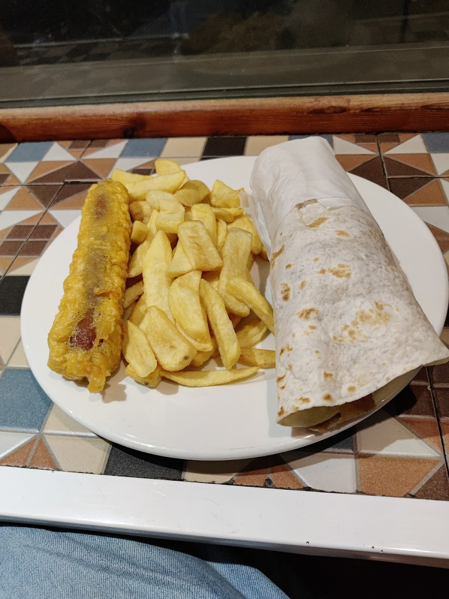 Among the standout items on the menu, the Kebab Wrap is a must-try. It's the perfect handheld meal, packed with savory meat, fresh veggies, and perfectly seasoned sauces. If you're looking for something a bit heartier, the Lamb Kebab with Battered Sausage and Chips will surely satisfy your hunger. The combination of tender lamb and crispy battered sausage served alongside crispy chips makes this dish a favorite among regulars.